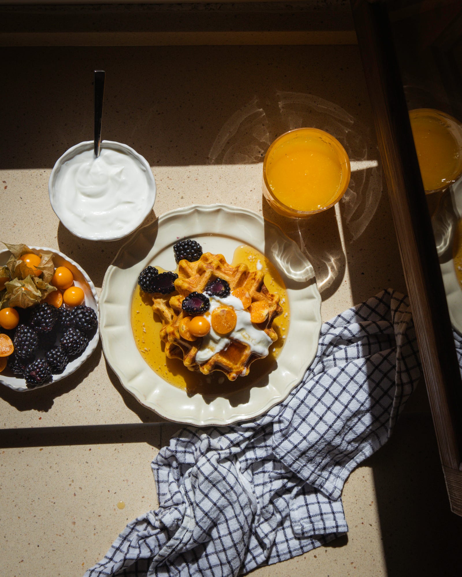 I’m a firm believer that brunch isn’t complete without a pancake or waffle on the table, and this sweet potato waffle strikes the perfect balance of tart and sweet.